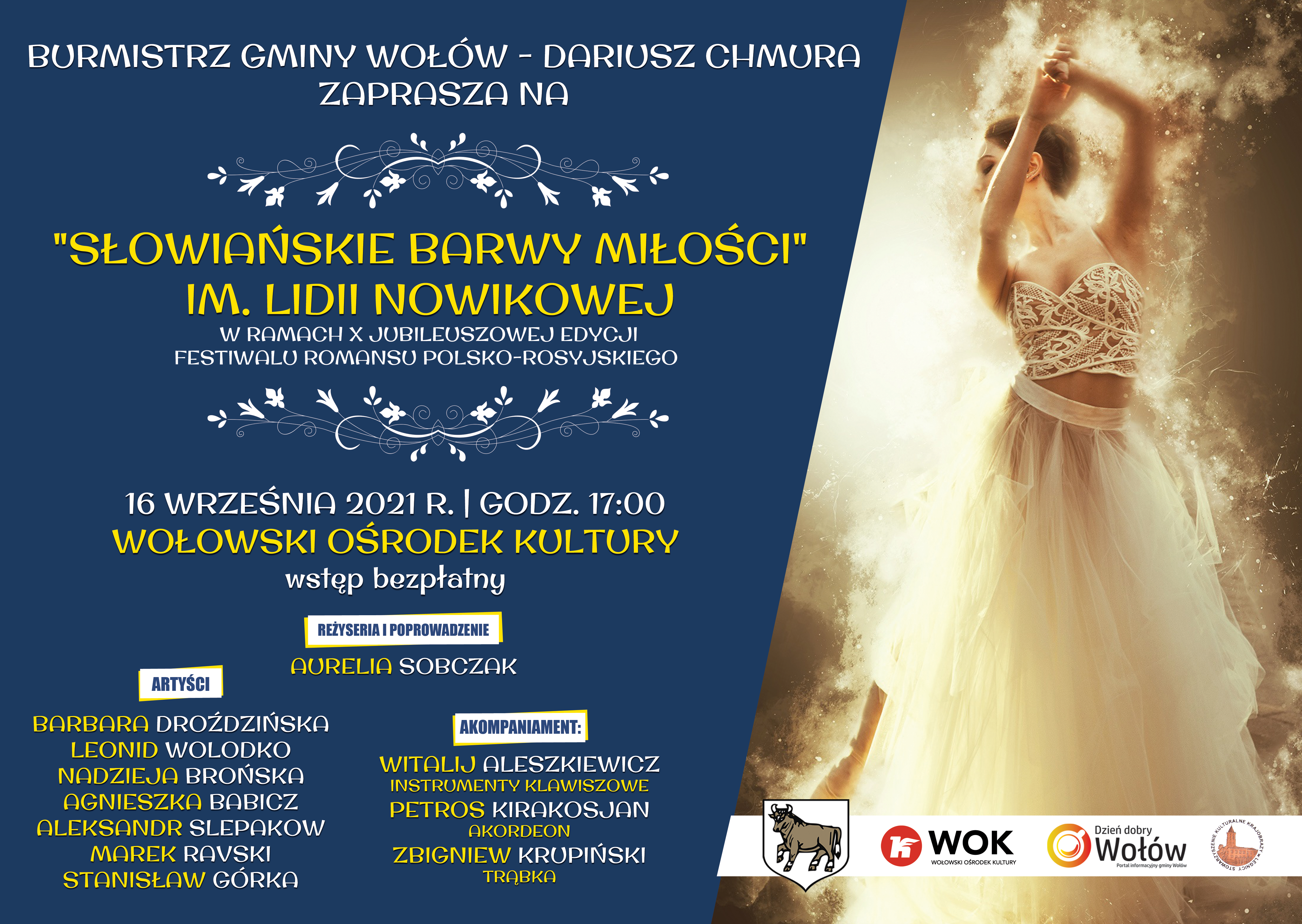 Burmistrz Gminy Wołów – Dariusz Chmura oraz Wołowski Ośrodek Kultury mają zaszczyt zaprosić na koncert w ramach X jubileuszowej edycji Festiwalu Romansu Polsko-Rosyjskiego. Koncert odbędzie się