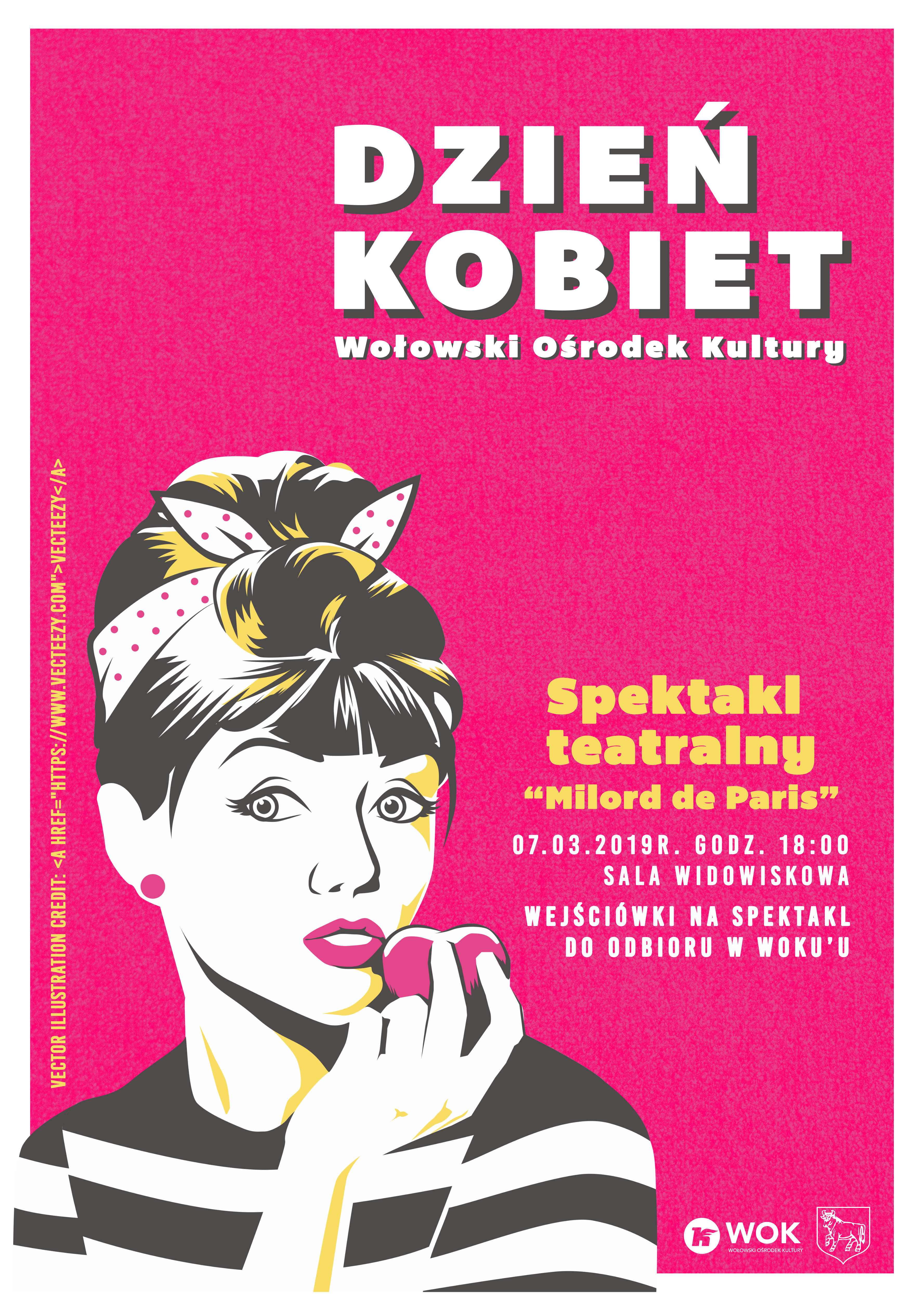 Z okazji Dnia Kobiet zapraszamy już 7 marca 2019r. (czwartek) na wyjątkowy spektakl teatralny „MILORD DE PARIS” w wykonaniu wrocławskiej SCENY KAMIENICA, który odbędzie się w Wołowskim Ośrodku Kultury. Wstęp wolny – zaproszenia do odbioru w Sekretariacie WOK już od 25 lutego (poniedziałek)