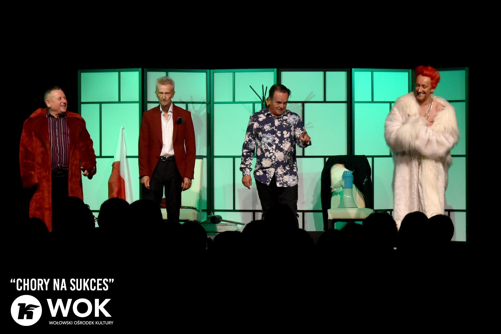 W ubiegłą sobotę w Wołowskim Ośrodku Kultury odbył się spektakl „Chory na sukces”, w którym wystąpili: Tadeusz Ross, Krzysztof Handke, Piotr Pręgowski oraz Michał Wiśniewski. Licznie zgromadzona publiczność miała okazję uczestniczyć w spektaklu teatralnym, ale również wysłuchać krótkich kabaretowych skeczy, czy utworów z repertuaru zespołu Ich Troje.