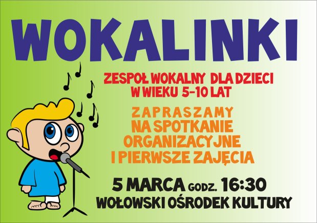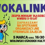 Zapraszamy wszystkie chętne dzieci w wieku 5-10 na spotkanie organizacyjne reaktywowanych „Wokalinek”. 5 marca , godz. 16:30.