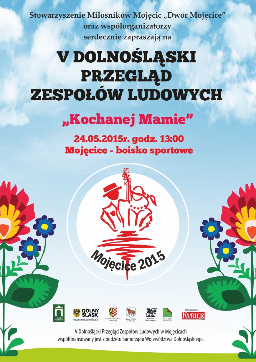 Już za kilka tygodni – 24 maja na boisku sportowym w  Mojęcicach odbędzie się piąta edycja Dolnośląskiego Przeglądu Zespołów Ludowych. Zapraszamy wszystkich  miłośników  ludowych brzmień.   Zainteresowanych wzięciem udziału w przeglądzie informujemy, że można już pobierać regulamin i kartę zgłoszeń. PDF , DOC