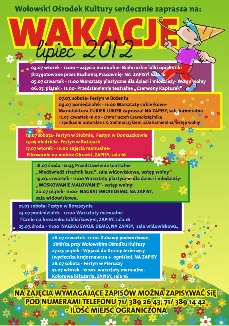 Wszystkie dzieci (i nie tylko!) zachęcamy do skorzystania z naszej oferty wakacyjnej. Część zajęć wymaga wcześniejszych zapisów – prosimy o wcześniejsze zgłoszenia telefoniczne.