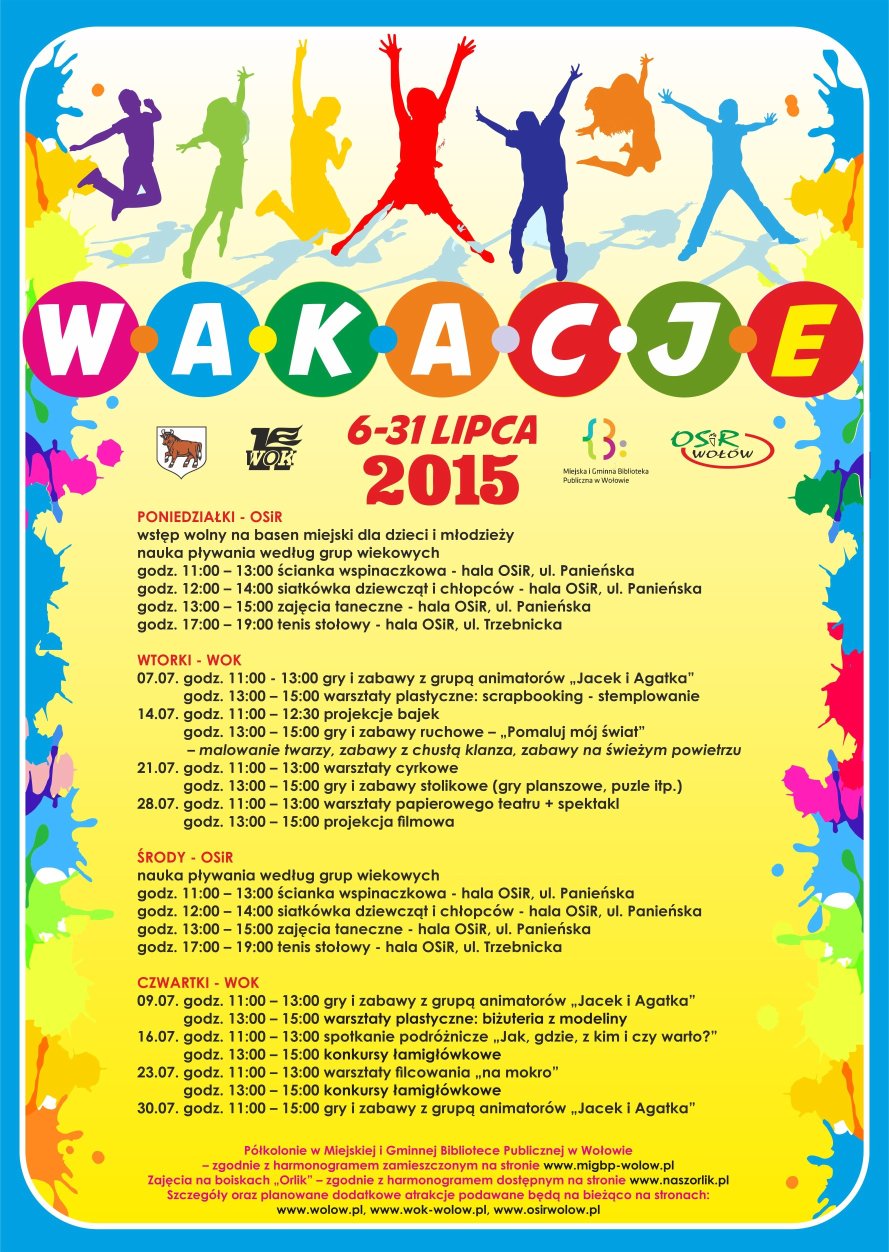 Serdecznie zapraszamy najmłodszych mieszkańców Wołowa i okolic do korzystania ze wspólnej oferty wakacyjnej przygotowanej przez gminne placówki.