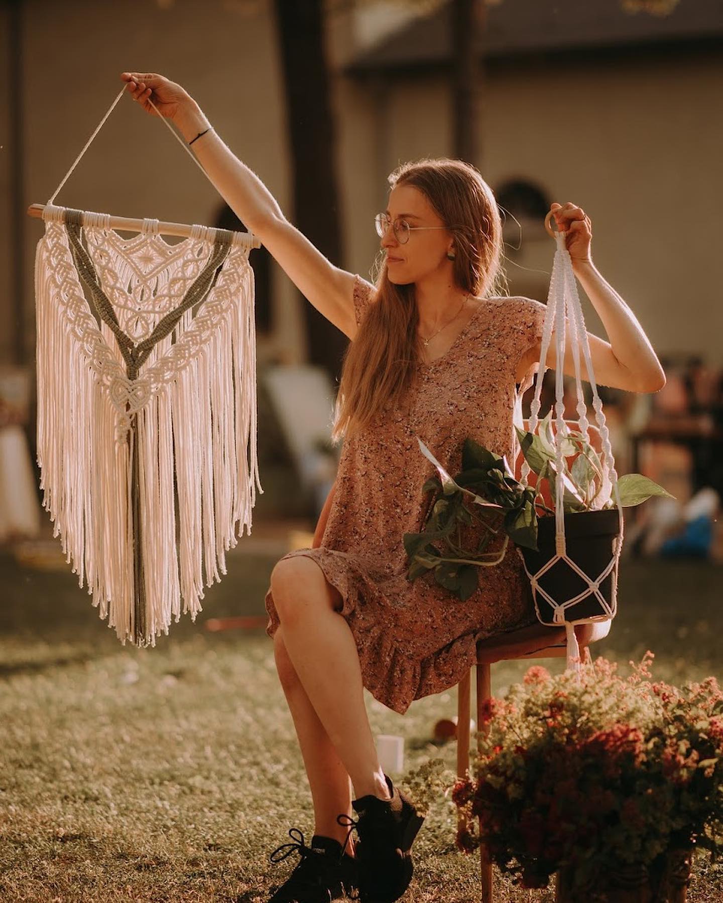 Uczestnicy zapoznają się z podstawowymi skrętami makramy, a podczas warsztatów wykonają własne kwietniki.