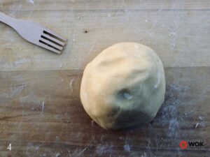 • Tak przygotowane ciasto uformuj w kulę i razem z miską włóż do lodówki na 30 minut. W tym czasie przygotuj sobie blaszkę (idealnie nadaje się ta, która jest w podstawowym wyposażeniu piekarnika) i wyłóż ją papierem do pieczenia.