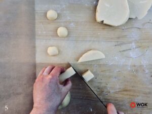 • Gdy ciasto już się schłodzi, wyjmij je i pokrój nożem na mniejsze kawałki. Z ciasta formuj kulki wielkości małego orzecha włoskiego – to ten przypominający mózg 😉