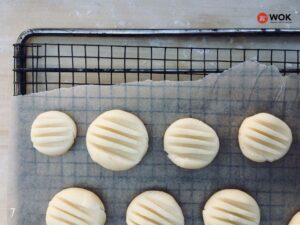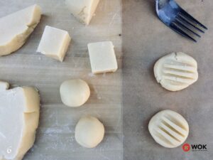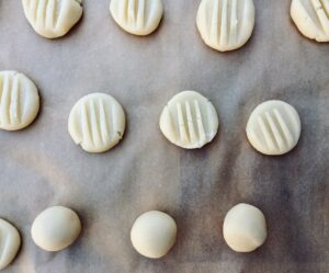 • Kulki układaj na blaszce, a każdą spłaszczaj widelcem.
