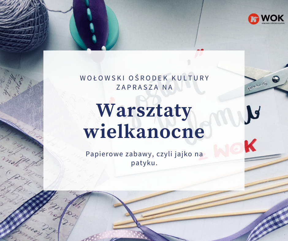 Wołowski Ośrodek Kultury zaprasza do udziału w warsztatach wielkanocnych online! Przed nami pierwszy warsztat z cyku „Papierowe zabawy”, który jest skierowany do najmłodszego grona odbiorców. Dziś wspólnie stworzymy wielkanocne jajko na patyku.