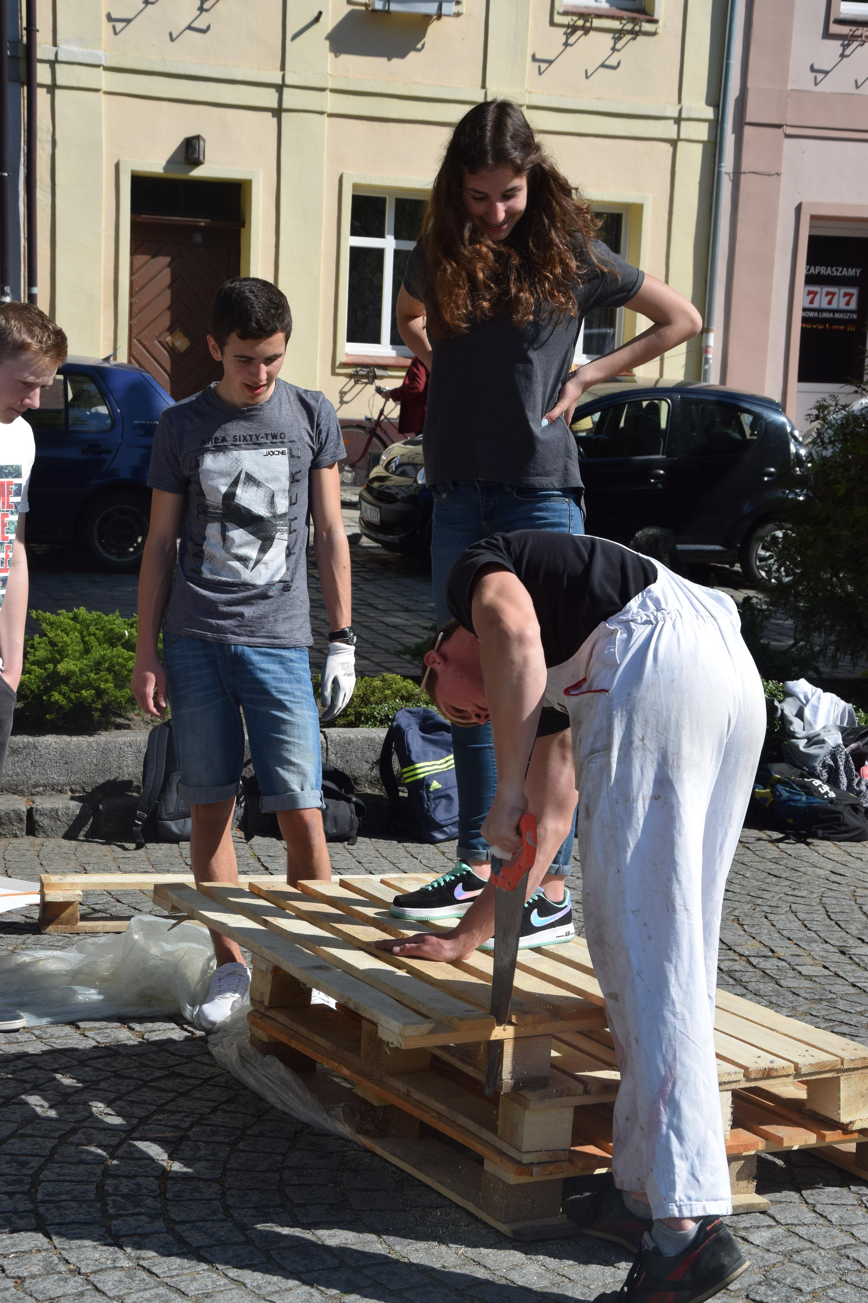 11 maja 2016 rok (środa) o godz. 9:00 wraz z wołowskimi gimnazjalistami zabraliśmy się do „ciężkiej” pracy. W oparciu o recykling, stworzyliśmy drewniane, wykonane z palet siedziska, dzięki którym na wołowskim rynku powstał kącik do czytania książek. Efekt- zaskakujący!