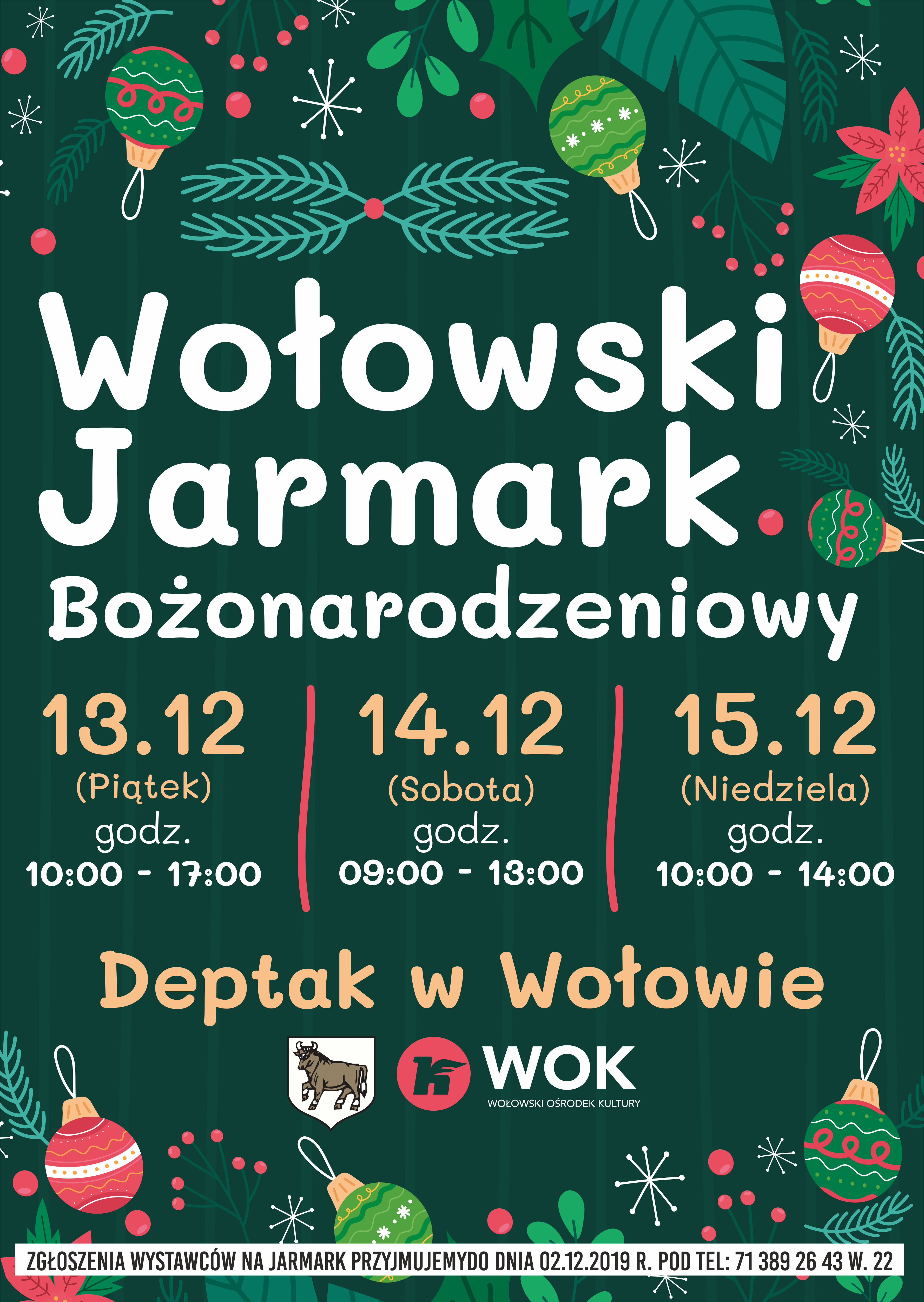 Mamy ogromną przyjemność zaprosić Państwa na tegoroczną edycję Wołowskiego Jarmarku Bożonarodzeniowego na wołowskim DEPTAKU (ul. Piastów Śląskich), który odbędzie się w dniach 13/14/15 grudnia 2019 r.