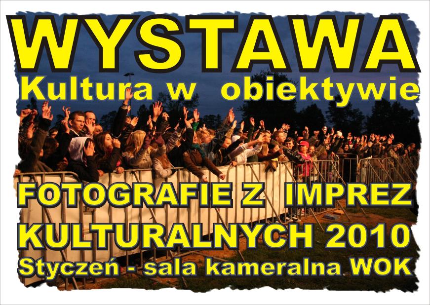 Zapraszamy do obejrzenia zdjęć z  wydarzeń kulturalnych organizowanych i współorganizowanych przez WOK w roku 2010.  Na 80 zdjęciach wracamy wspomnieniami do zeszłorocznych imprez. Wystawę można oglądać  przez najbliższe 3 tygodnie w sali kameralnej WOK w  godzinach otwarcia ośrodka.