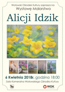 Zapraszamy do zapoznania się z relacją fotograficzną z wernisażu malarstwa Pani Alicji Idzik, która odbyła się w piątek – 6 kwietnia 2018 w sali kameralnej WOK. Doświadczenia i wiedza miały znaczący wpływ na twórczość Artystki. Bardzo miękka, subtelna plama kolorystyczna podkreślała i wydobywała delikatność świata przyrody. Kompozycje kwiatowe, krajobrazy z różnych terenów Polski tchnęły swoistym klimatem oraz niepowtarzalną poezją plastyczną.
