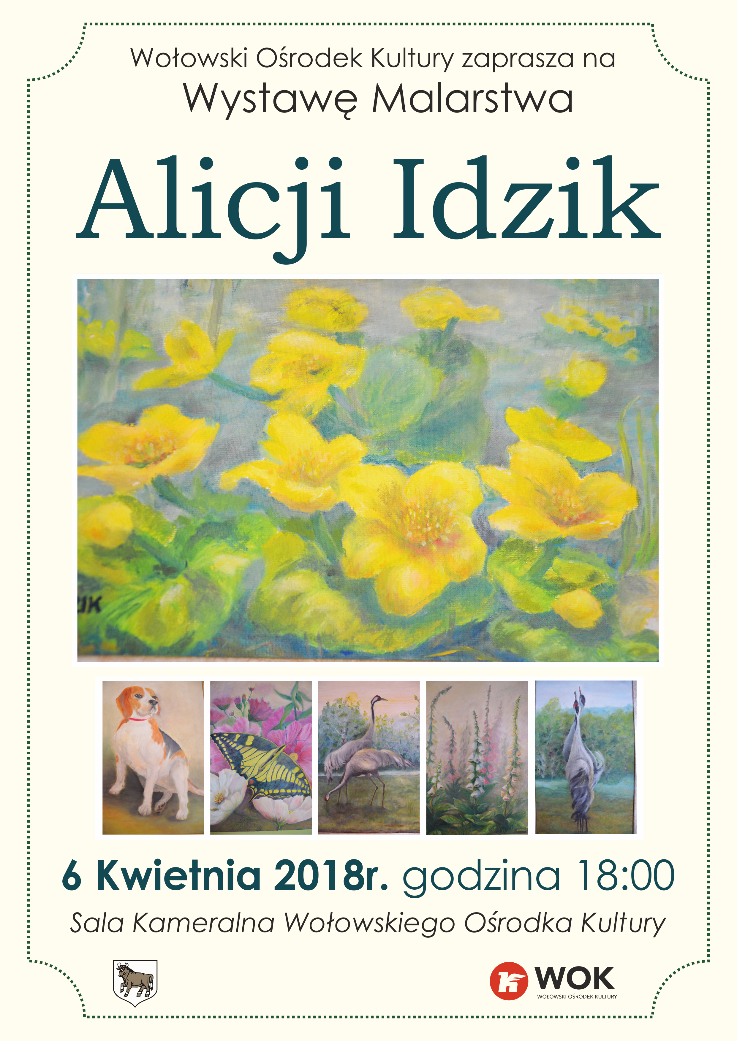 Zapraszamy do zapoznania się z relacją fotograficzną z wernisażu malarstwa Pani Alicji Idzik, która odbyła się w piątek – 6 kwietnia 2018 w sali kameralnej WOK. Doświadczenia i wiedza miały znaczący wpływ na twórczość Artystki. Bardzo miękka, subtelna plama kolorystyczna podkreślała i wydobywała delikatność świata przyrody. Kompozycje kwiatowe, krajobrazy z różnych terenów Polski tchnęły swoistym klimatem oraz niepowtarzalną poezją plastyczną.