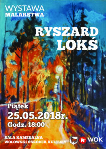 Wołowski Ośrodek Kultury ma zaszczyt zaprosić Szanownych Państwa na wernisaż twórczości Pana Ryszarda Lokś, który odbędzie się 25 maja 2018r. (piątek) o godz. 18:00 w sali kameralnej Wołowskiego Ośrodka Kultury.