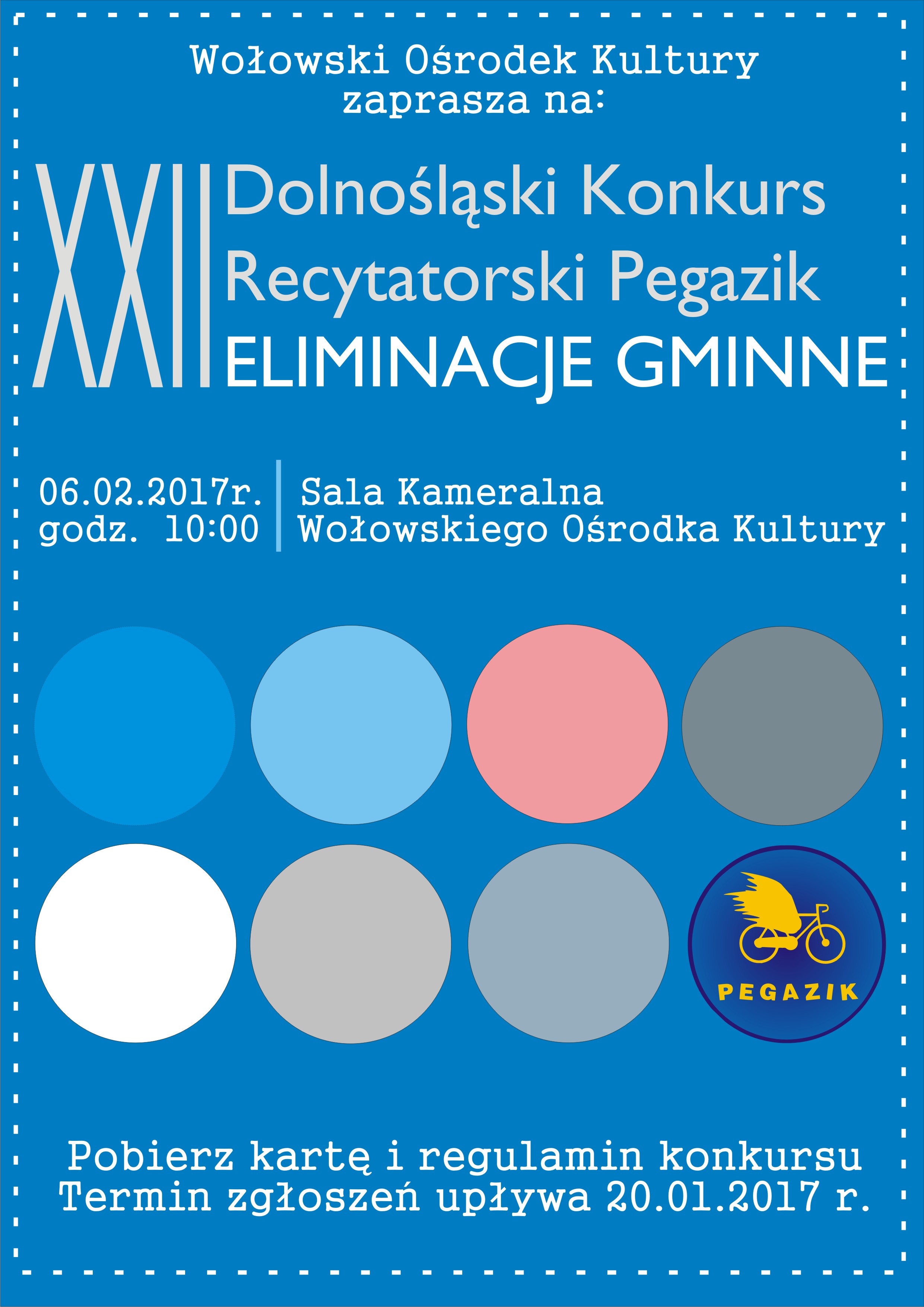 Wołowski Ośrodek Kultury serdecznie zaprasza uczniów gminnych szkół do udziału w XXII Dolnośląskim Konkursie Recytatorskim „Pegazik” organizowanym przez Kłodzkie Centrum Kultury, Sportu i Rekreacji.