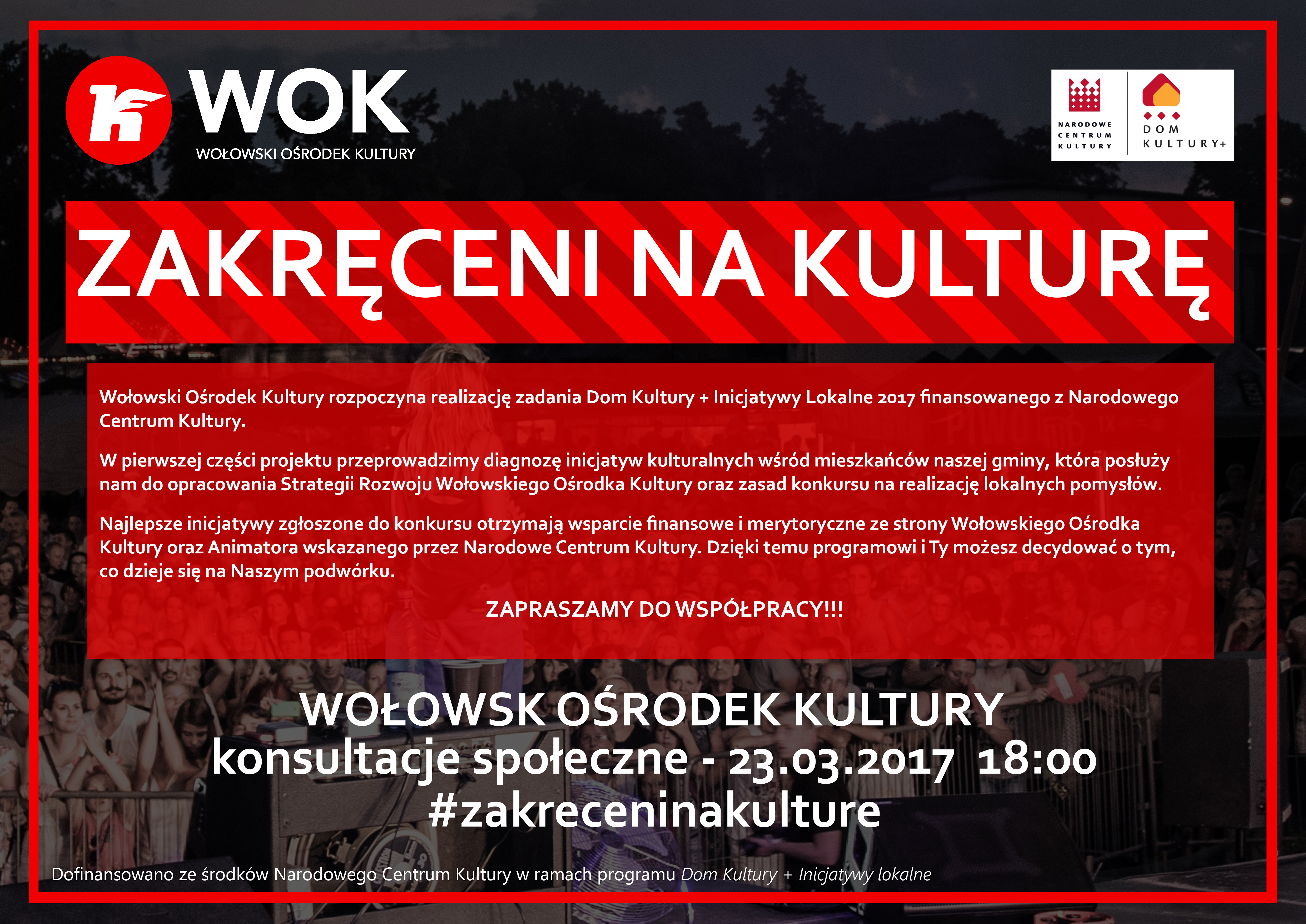Zapraszamy bardzo serdecznie na Konsultacje społeczne, które odbędą się 23 marca 2017 r. o godz. 18:00 w sali kameralnej WOKu.