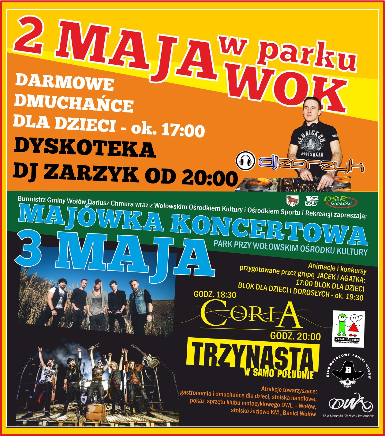 WAŻNY KOMUNIKAT! Ze względu na trwałą poprawę warunków atmosferycznych, które feralnie w dniu wczorajszym zadecydowały o odwołaniu imprezy, POTWIERDZAMY, że w dniu 03.05.2015r. Majówka Koncertowa w Parku WOK odbędzie się zgodnie z założonym harmonogramem!