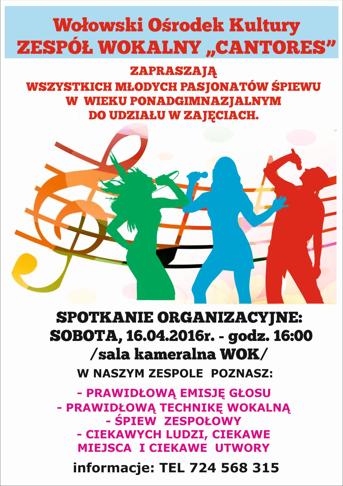 Wszystkich młodych pasjonatów śpiewu zapraszamy na spotkanie organizacyjne zespołu wokalnego „Cantores”.